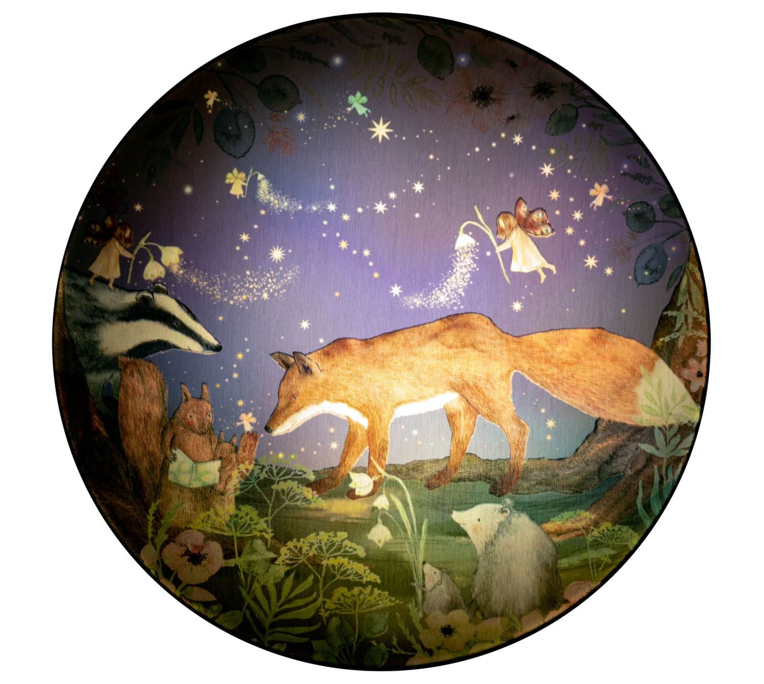Die wunderschöne Wandlampe Sommernacht von der dänischen Marke Hartendief, bringt einen magischen Zauber ins Kinderzimmer. Wenn am Abend das Licht angeht, bezaubert das magische Bild und zauberhafte Elfen verteilen Sternenstaub. Alle Bilder wurden von der Designerin per Hand mit Aquarellfarbe gemalt und dann auf die Materialien gedruckt. Die Deckenleuchte ist ein absoluter Traum und sowohl tagsüber als auch Abends ein schönes und besonderes Kinderzimmer Accessoire.